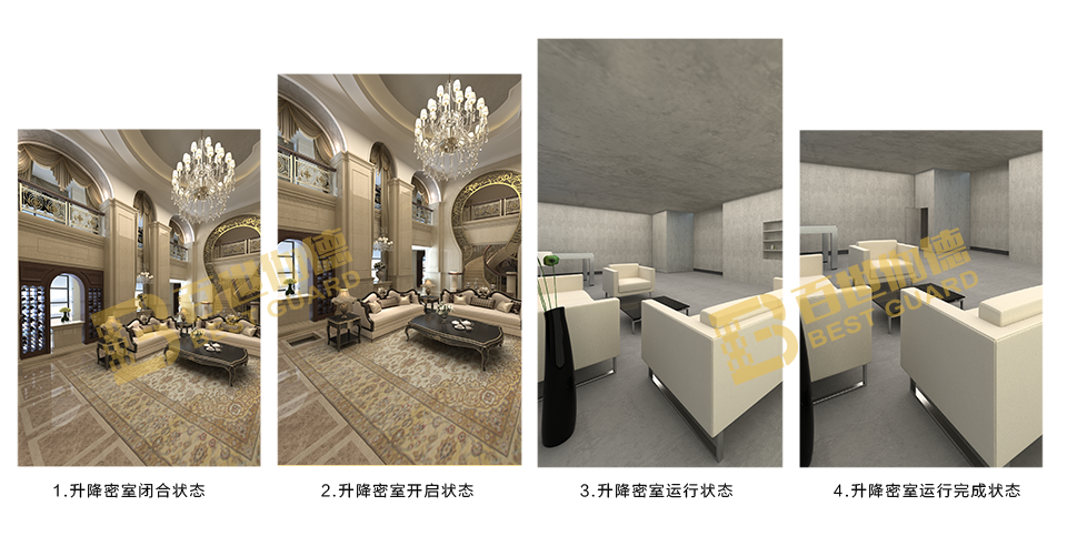 產品介紹:利用地磚、地板、地毯等掩飾,經過高科技細節處理,達到肉眼無法觀察的隱藏效果。開啟時,平穩升降并設置安全防護。堅固的鋼架結構,完美的隱藏效果,便捷安全的開啟方式,還有與環境融為一體、毫無突兀的視覺效果、造就無與倫比的專屬隱藏空間。